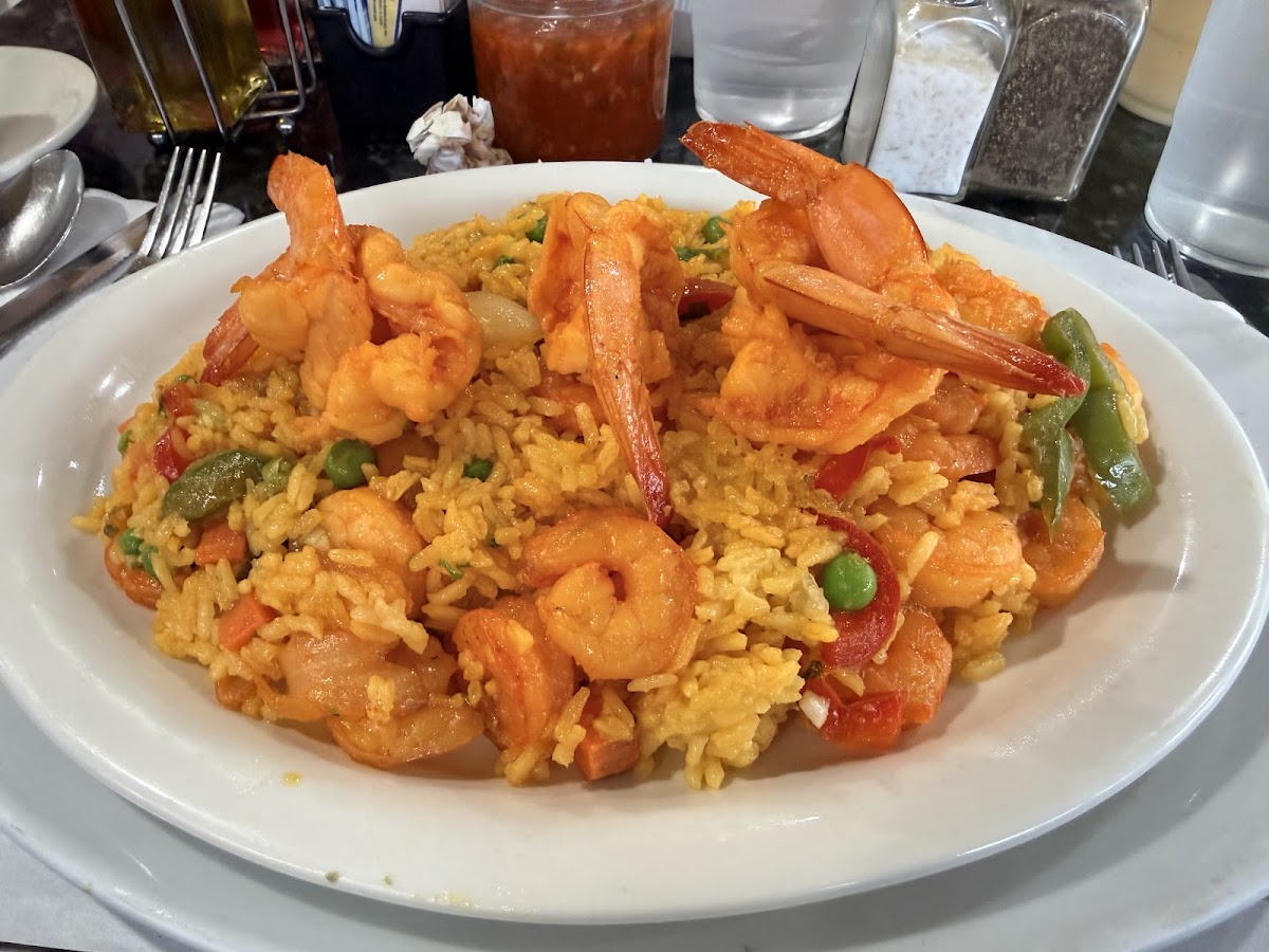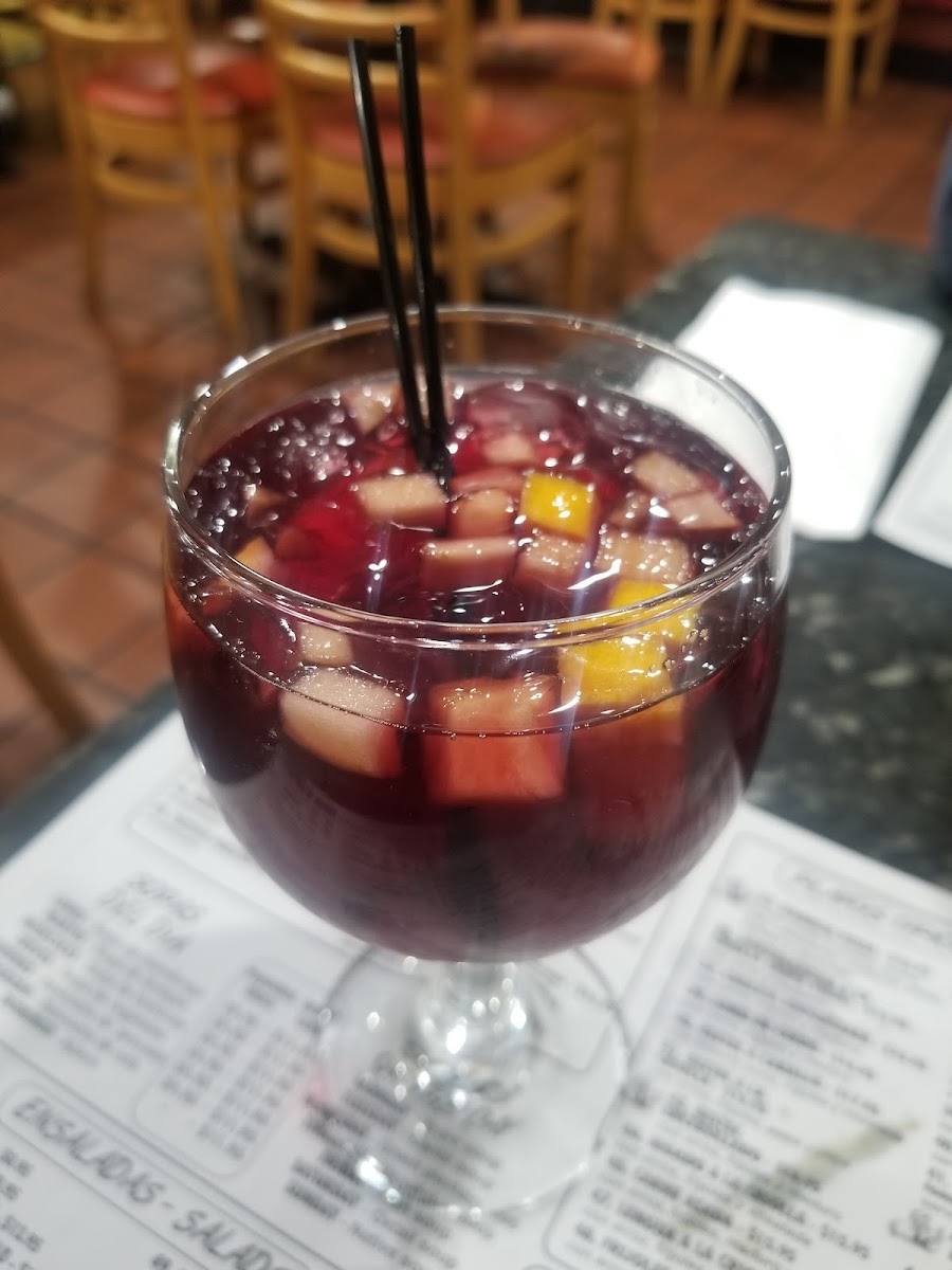 To start off the lunch my waiter was friendly and approachable. I asked for a recommendation between two choices and herea my review of the Sirloin & Shrimp. The Salad is fresh and crispy The sangria is a good balance between tart and sweet but still light on the palette. The beans had a sweetness to them and were so soft you only needed your tongue to eat them. Normally im not a fan of rice and beans but this was a delight. The steak was great, juicy and packed with flavor. It paired well with the shrimp. The peppers and onions were soft too! The atmosphere of the restaurant is warm and inviting despite its small size they use every square foot without making you feel boxed in.