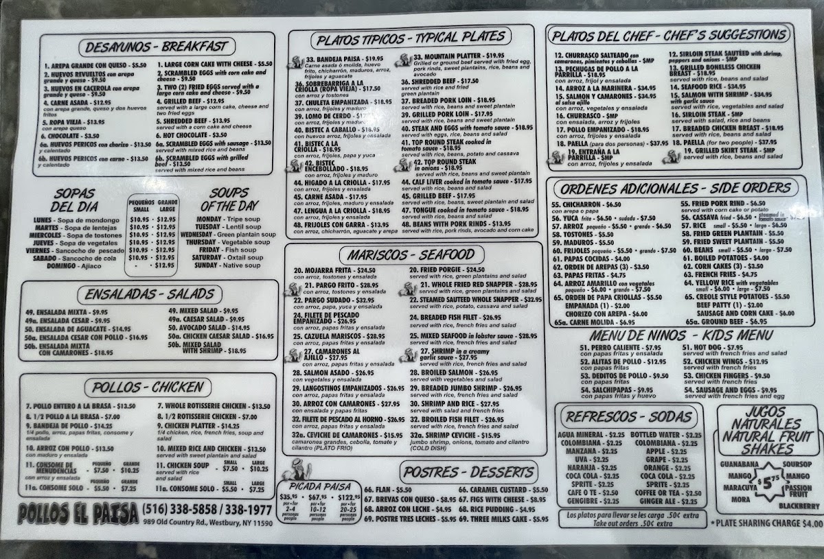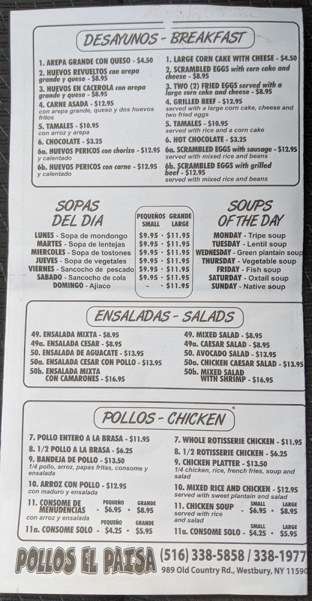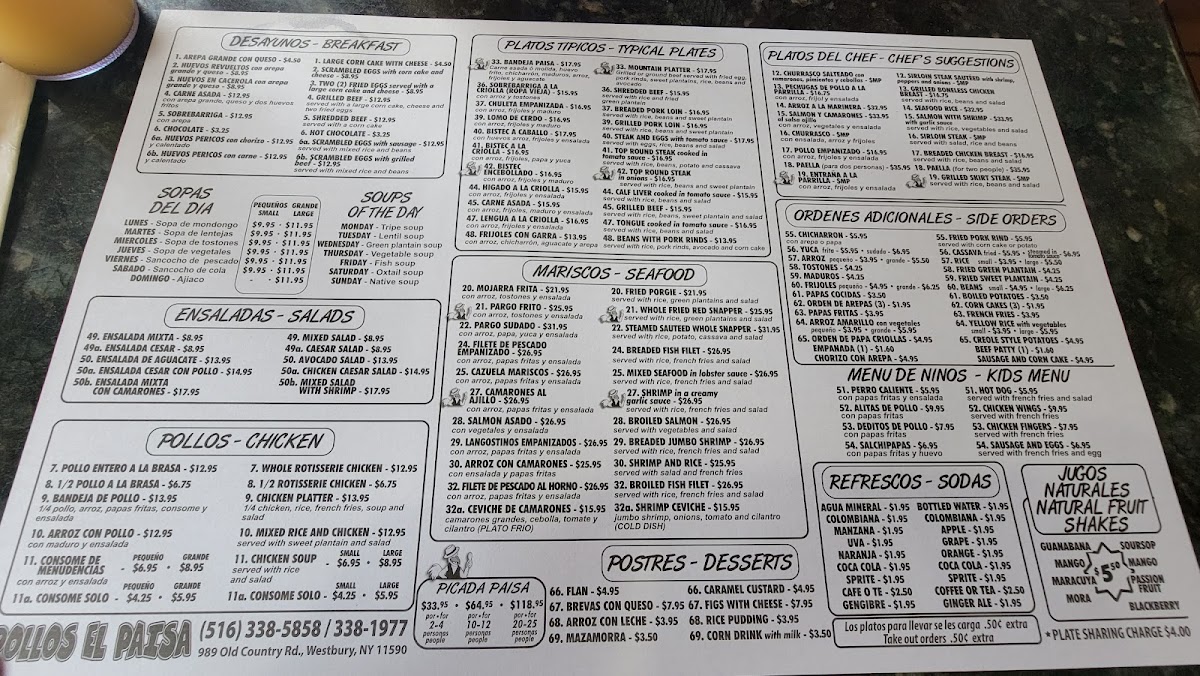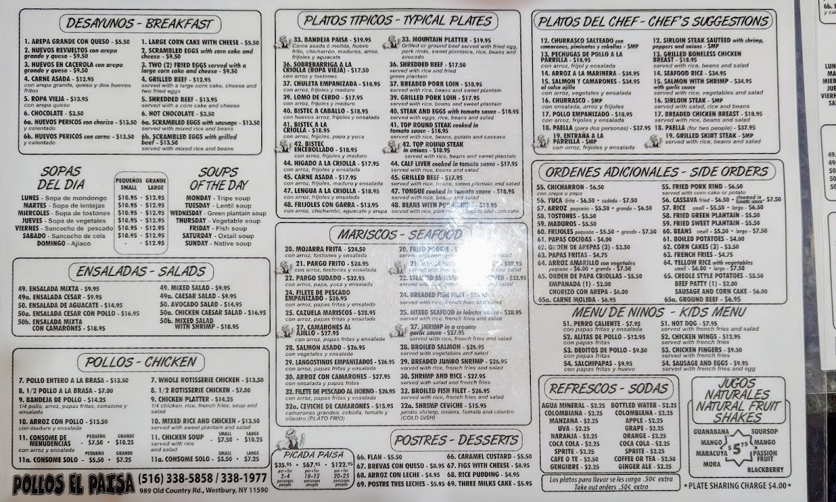 Pollos El Paisa Menu