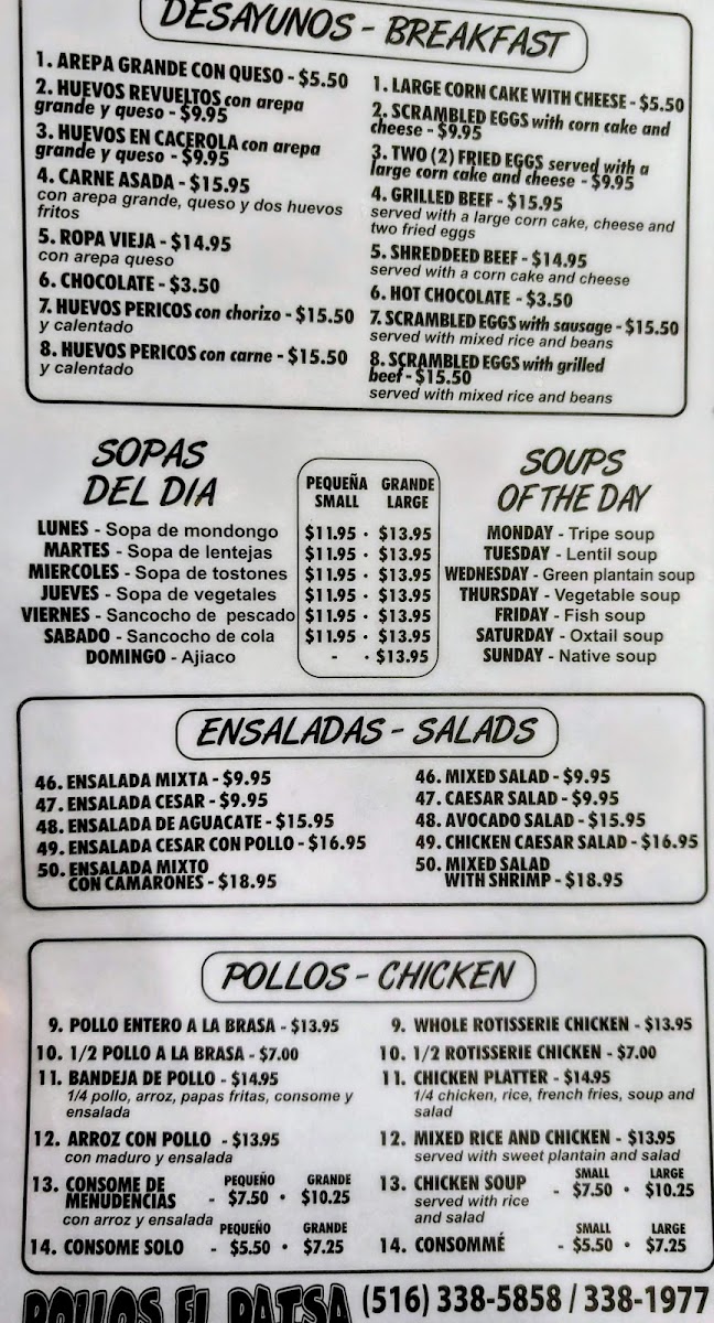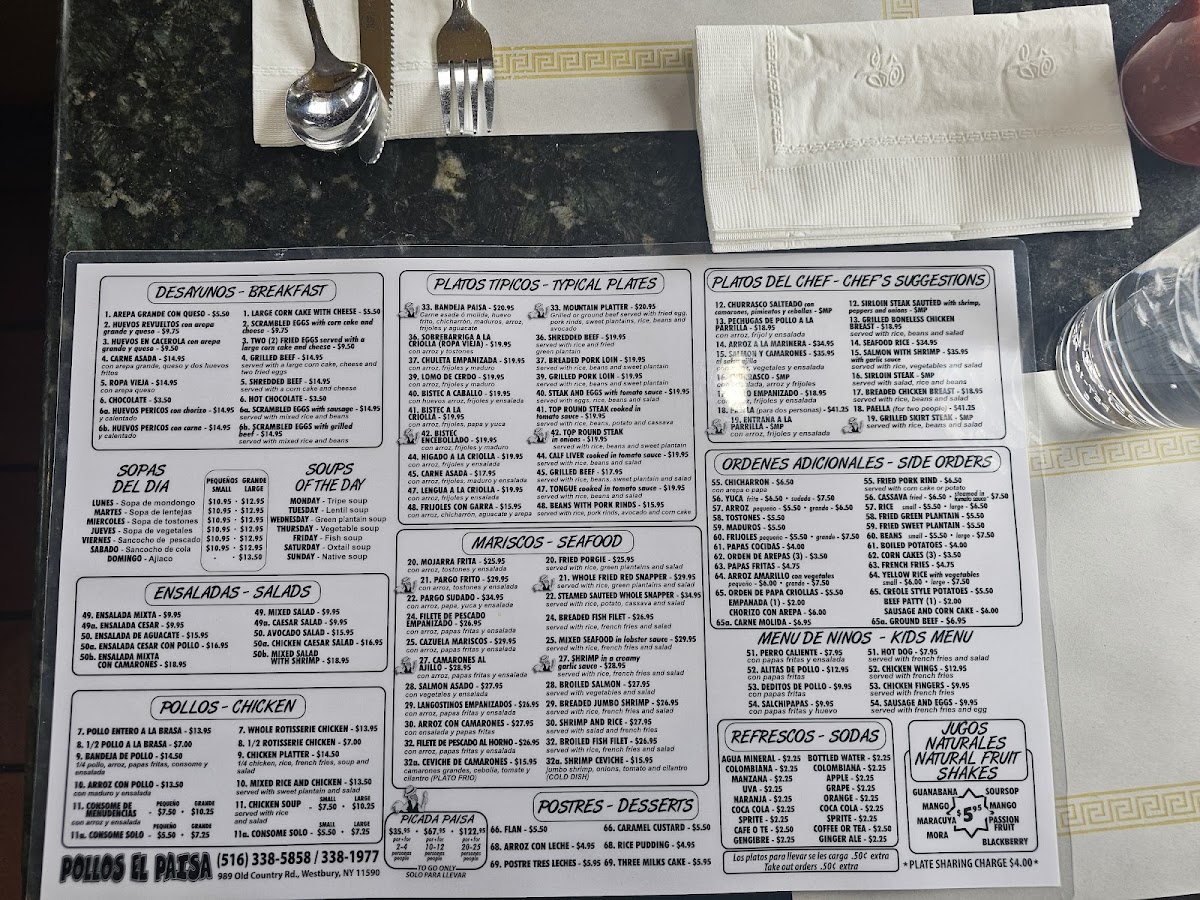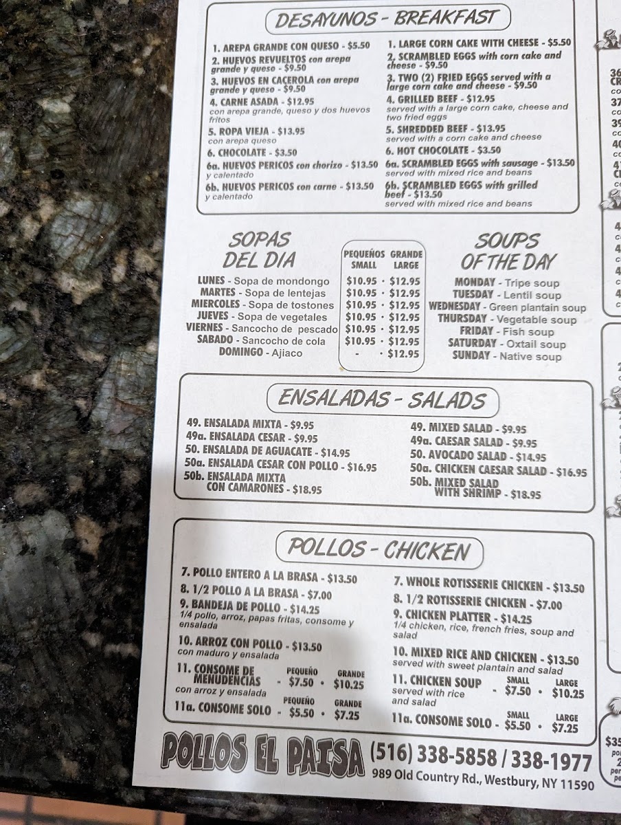 Pollos El Paisa Menu